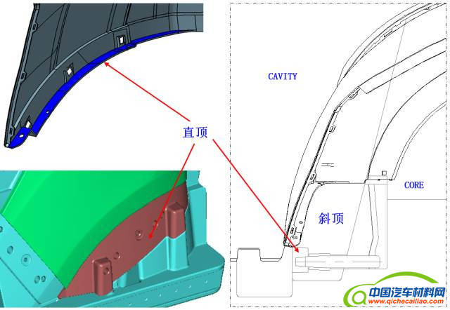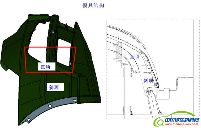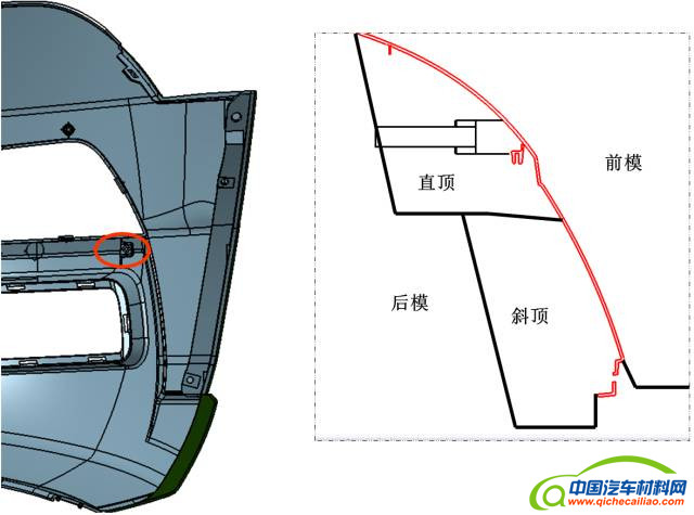 在汽车注塑模具中,针对汽车保险杠产品,模具设计时通常会采用先进的内分型面技术。其优点是分型夹线隐藏在保险杠的非外观面上,在汽车上装配后看不到外观夹线,不会影响产品外观。但这种技术在难度与结构上都要比外分型保险杠复杂,技术风险也较高,模具成本与模具价格也会高于外分型保险杠很多,但因外观美观,在中高档汽车中被广泛应用。
