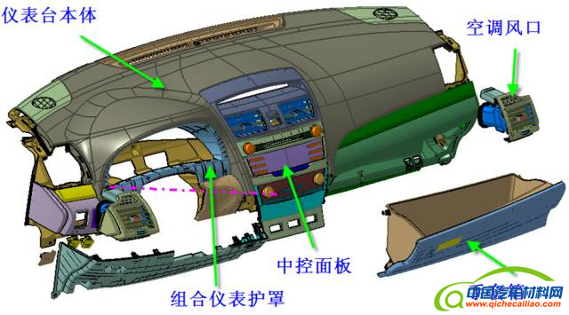 主要包括主仪表台总成、仪表台管梁总成、副仪表台总成。