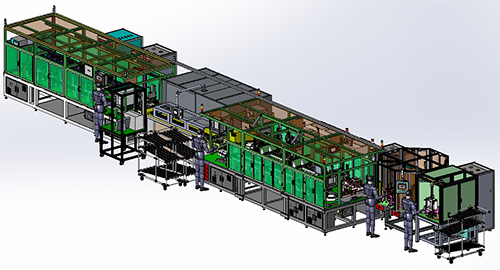 作为码信普罗(AHTE 2017展位号:E6-E12)的汽车零部件自动生产系统方面的最新成果,汽车发动机电动水泵自动生产线主要生产汽车发动机的电动冷却水泵,本生产线整体采用传送链条+托盘+机器人投料的方式进行各工程之间的自动输送和自动质量检测。主要包括以下工程:线圈端子的切断、插入;线圈端子的焊接、焊接质量判别;线束插头的端子切断、折弯、搬送;托盘材料供给、机器人投料、投料状态检测;电动水泵的成形(注塑)、取料、质量判别;成形后电动水泵激光刻印、质量判别、电动水泵冷却;电动水泵的电气性能测定(绝缘耐压、电流、脉冲)。
