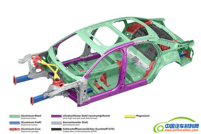 加长之后的奥迪A8L车身材料与奥迪A8车型保持一致。