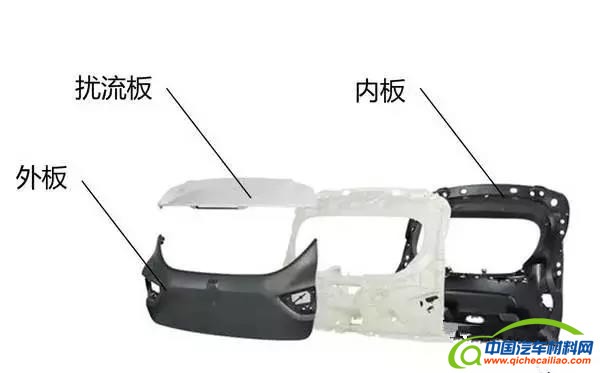 全塑尾门的内板使用长玻纤增强的PP(LGF+PP),外板和扰流板使用PP或者TPO,部件全部使用注塑工艺成型,然后使用涂胶工艺进行装配。