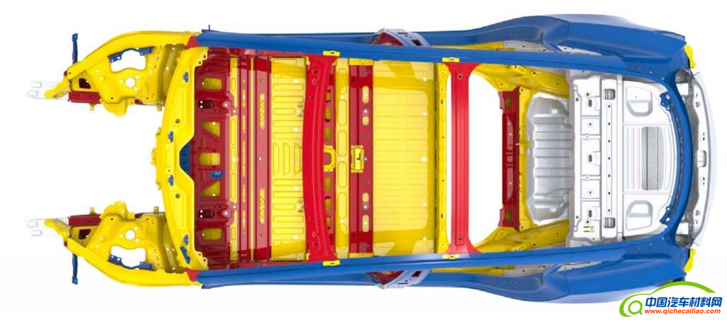 不多的铝制结构主要集中在车尾,这可能是为了平衡后轴电动机带来的重量。超高强度钢集中于乘客舱,形成了数个 H 形防撞结构。