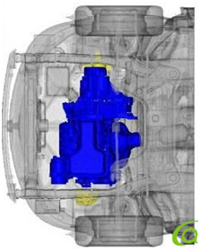 发动机下沉是目前已广泛应用的汽车安全技术之一,是指在汽车发生碰撞时发动机产生下沉,而不是挤压到驾驶室,减少对驾驶者产生伤害的风险。为实现发动机下沉,有的厂家将发动机固定在一个特别设计的结构上,并采用了特殊的连接方式,确保在发生前方剧烈撞击过程中,承载发动机的托架后移,促使发动机倾倒,从而可部分阻止发动机向驾驶室移动。也有的是通过可溃式的卡扣固定发动机,当受到正面撞击时,可溃式卡扣会自动断裂,致使发动机下沉。发动机在下沉时还可吸收和分散一部分撞击能量,同时也能减小撞击对驾乘人员的伤害。