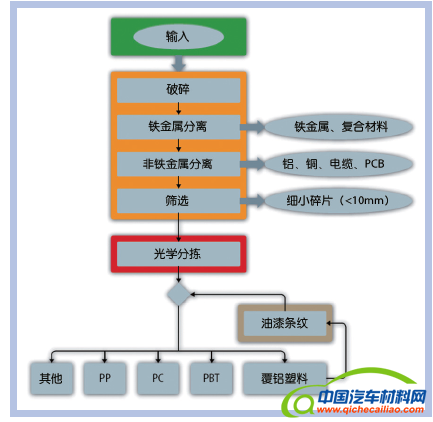 很少有某种单一材料能满足汽车工程的所有需求。然而,混合材料又难以通过适当的努力进行手工拆解,所以迄今为止生产废料只能经过热处理才能得到应用。而传感器辅助塑料分拣不仅能实现较大处理量,而且颇具经济潜力。