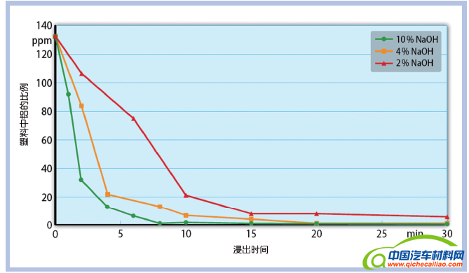 图4 通过浸出分离金属塑料复合材料:浸出时间取决于烧碱浓度(来源:Fraunhofer IVV)