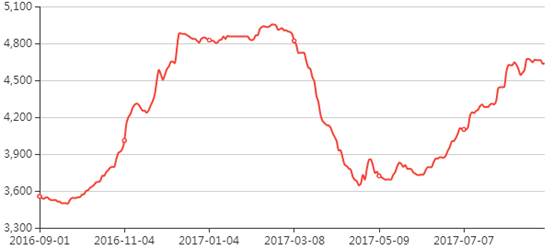 热轧钢年度走势图(2016年09月1日——2017年09月1日)