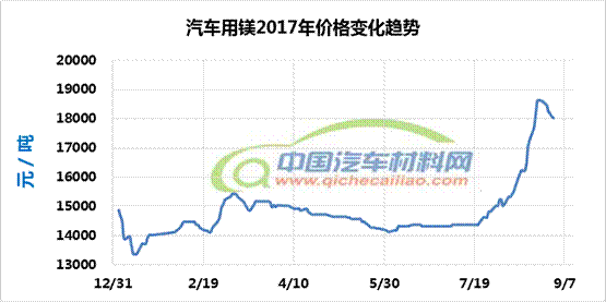 (汽车用镁年度价格趋势:2017.01.03-2017.09.1)