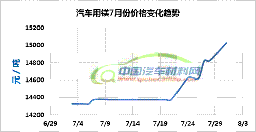 汽车用镁本周价呈持续下跌趋势,一周内跌幅为450元/吨,本周五价格跌至18025元/吨。汽车用镁本周均价为18205元/吨,较上周上涨6.40%,较7月份均价上涨13.68%。