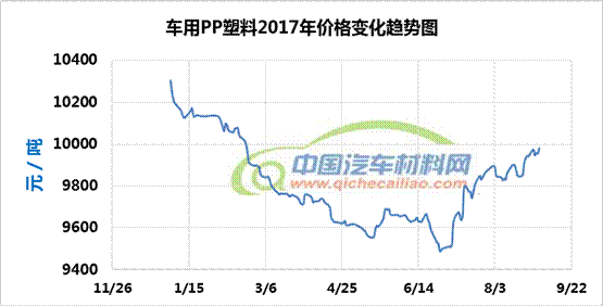 (车用PP年度价格趋势:2017.01.03-2017.09.01)