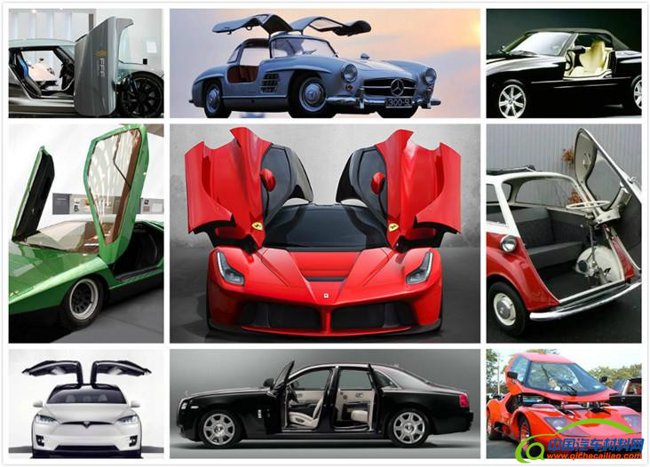 【鸥翼门】 因车门铰链安装于顶棚中间的纵梁上,车门开启之后的形态好似飞翔的海鸥翅膀而得名。外形兼具动感与科幻色彩的鸥翼门,在上世纪50年代梅赛德斯-奔驰300SL赛车诞生之际便收获了世人的关注。在最初,设计师为了兼顾车门和赛车的管状车架,迫于无奈才作出鸥翼门这样的设计。 鸥翼式车门看似帅气优雅,却存在不少缺陷:铰链上移,会承受更大力量,对车门的重量提出更高要求;车门的密封和防水性能要求提升;独特的开门方式,需要停车位提供更大的空间;一旦翻车,鸥翼门无法打开,会给驾乘人员逃生带来困难。虽然就现在的技术而言,这些难题并非无法解决,但会增加设计和制造成本,所以目前,鸥翼门只能应用在一些跑车上。 ★代表车型:奔驰SLS
