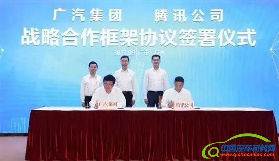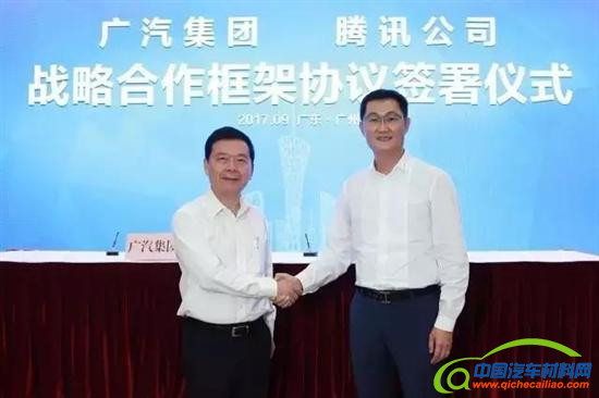 9月18日,广汽集团公布,与腾讯公司在广州签订了《战略合作框架协议》,有效期3年。广州市、南沙区的相关领导、腾讯公司董事会主席兼CEO马化腾,广汽集团董事长曾庆洪等都出席了签约仪式。