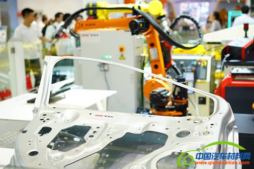 复合材料零部件成形技术与装备:选用碳纤维复合材料制作结构件、覆盖件,可减轻质量达30%左右。很多汽车制造厂商生产的高档、豪华轿车几乎都开始试应用各种碳纤维复合材料。福特公司2007年所做的研究证明了碳纤维复合材料可以将零部件种类减为原来的8%,加工费用相对钢材降低60%,粘结费用相对焊接减少25%——40%。这次展览会展出了大量复合材料成型与连接技术。