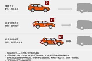 前方碰撞预防辅助制动系统(FCM)--当判断车辆有追尾危险时,FCM系统将发出警报,并自动启动刹车以尽量避免碰撞发生,减轻碰撞伤害,可谓是“最警觉的保护器”。