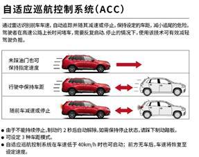 自适应巡航控制系统(ACC)--当驾驶者在高速公路上长时间堵车,需要反复启动、停止时,ACC系统可通过雷达识别前车车速,自动追踪并随其减速或停止,保持设定车距减小追尾的危险,有效减轻驾驶负担,可以说是消费者自驾出行的“探路者”。