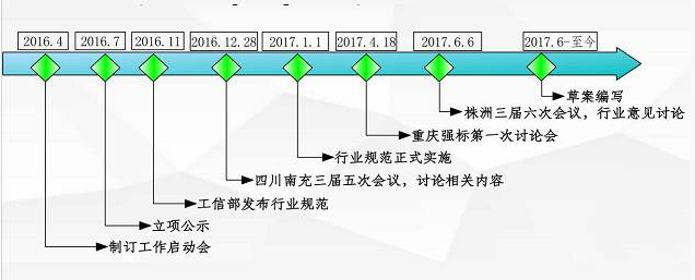 2016年4月启动制定工作,先后经过5次讨论,收集行业内各个新能源客车生产企业和检测机构意见,与11月15日在 《工业和信息化部关于进一步做好新能源汽车推广应用安全监管工作的通知》(工信部装[2016]377号 )暂时以技术条件的形式发布 。