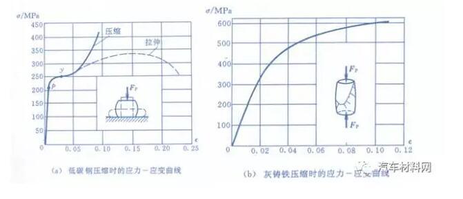 低碳钢和灰铸铁压缩时的应力应变曲线