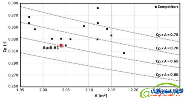 通过对奥迪A1的气动优化措施,奥迪A1的气动阻力系数从原始模型的0.40降低到了0.32,这相当于在减小了0.6L的百公里油耗。
