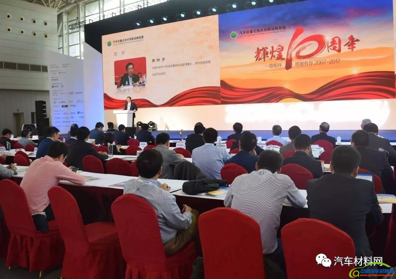 2017年10月24日,汽车轻量化技术创新战略联盟(以下简称“轻量化联盟”“联盟”)成立十周年庆典活动在上海举行,庆典活动包含联盟成立十年回顾、特邀领导和嘉宾发言、相关奖项(特别贡献奖、卓越贡献奖、优秀工程师奖及优秀成果奖)颁奖以及联盟成果展示等内容。本次活动由联盟秘书长张宁主持,联盟理事长付于武、原科技部政策法规司巡视员李新男、原中信金属有限公司董事长付俊岩等领导和专家出席活动。