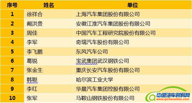 之后进行的是“优秀工程师”的评奖。该奖项要求获奖人员必须满足“联盟单位的现职人员;积极参与联盟组织有关活动,为推动联盟发展、联盟单位间的和跨产业、跨学科合作做出了突出贡献;长期从事轻量化技术研究工作,并在相关技术领域取得了突出成就。”3个条件,经联盟单位推荐、专家委评审、联盟理事会批准,上汽技术中心的徐祥合、江淮汽车技术中心的阚洪贵、中汽院的周佳等10人获得“优秀工程师奖”。