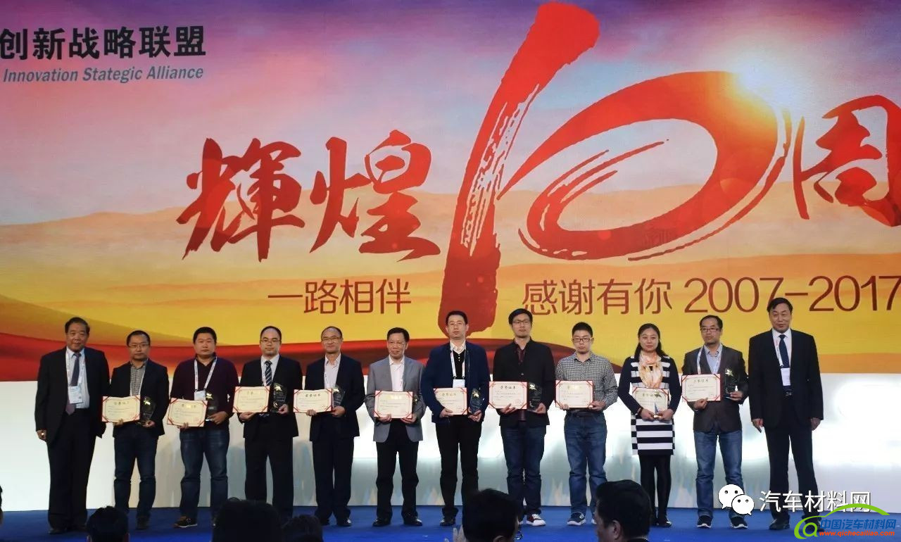 首先进行的是“优秀成果奖”的颁奖。据悉,在过去的十年中,联盟组织完成了20余个科技攻关项目,按照评奖对成果必须同时满足时间性、代表性、先进性、成熟性和带动性的五项要求,经联盟单位推荐,联盟微信群和公众号投票、“2017中国汽车轻量化技术研讨会”参会代表投票、联盟专家委评审,联盟理事会批准,最终吉林大学等单位完成的“汽车车身轻量化设计方法研究与应用”、浙江吉利控股集团有限公司等单位完成的“超高强度钢热冲压成形技术开发及其在目标车型上集成应用”、重庆长安汽车股份有限公司等单位完成的“铝合金轻量化零部件研究与集成应用”等10个项目获得了“优秀成果奖”。