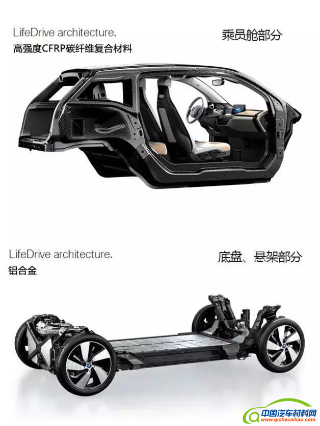 2013年,宝马电动汽车i3亮相,激进材料应用和工艺令世人惊诧。宝马i3将车身分成乘员舱模块和驾驶模块。乘员舱模块全由碳纤维复合材料制造,驾驶模块则是铝合金,两个模块通过粘接连接。