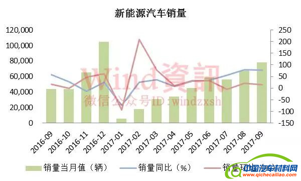 从最新的9月份数据看,新能源汽车保持了高速增长,9月份销量达到了7.80万辆,同比增长77.27%,环比增长14.71%。从今年前9个月累计数据来看,新能源汽车销量39.48万辆,同比增长37.23%。