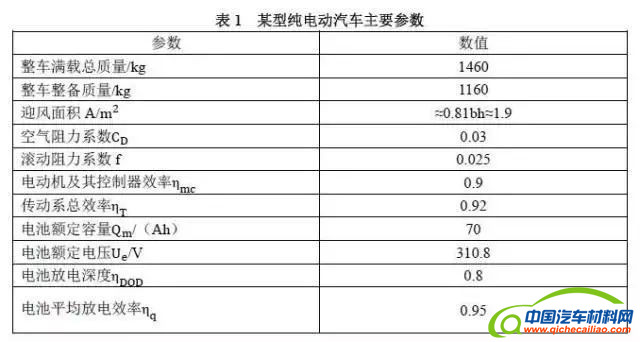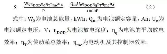 在一般道路等速行驶工况下,无加速阻力消耗,坡度阻力可忽略不计,故功率 计算只取前两项。根据能量守恒的原则,求得电动汽车等速行驶的续驶里程S为: