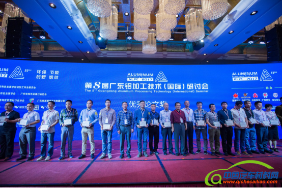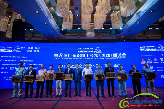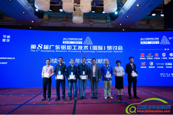本届会议对企业论文团体作出了表彰,2017年度企业论文团体冠军:广东高登铝业有限公司、肇庆亚洲铝厂有限公司;2017年度企业论文团体亚军:广东坚美铝型材厂(集团)有限公司、重庆西南铝业集团有限公司、宁波科诺铝业股份有限公司、广东凤铝铝业有限公司、广东伟业铝厂集团有限公司;2017年度企业论文团体季军:广东省材料与加工研究所、力尔铝业股份有限公司、泰诺风保泰节能科技(深圳)有限公司、山东南山铝业股份有限公司、四川三星新材料科技股份有限公司、四会市研创电器有限公司、天津开发区艾隆化工科技有限公司、广东新合铝业新兴有限公司。