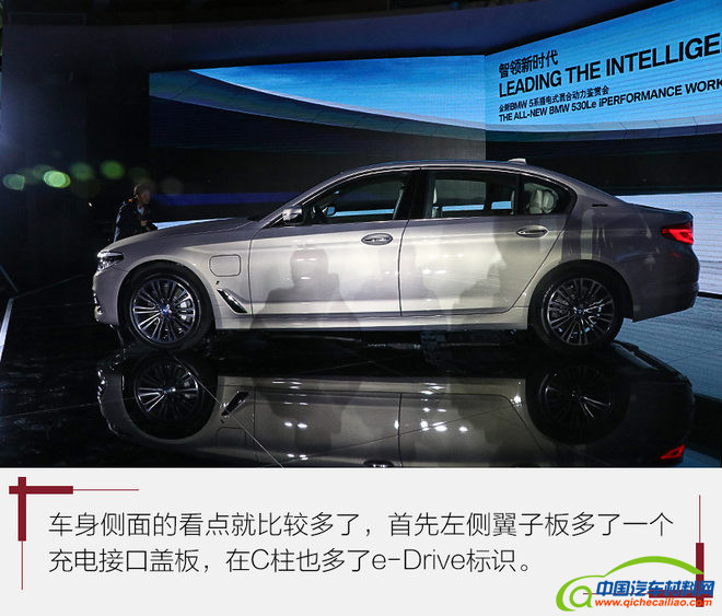 全新宝马530Le插电混动版车型外观采用了i-preformance设计理念,在一些细节之处增添了许多彰显新能源车型身份的专属标识。虽然从外观上不是那么容易分辨出它和普通版本5系车型的差异,但是当你移步到车身左侧后就会发现其与众不同之处。
