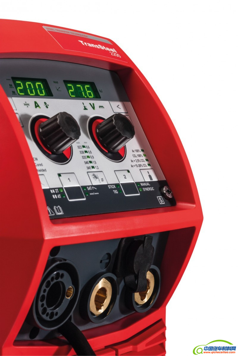 作为 MIG/MAG 逆变式焊接电源,TransSteel 2200 的一个巨大优势是拥有广泛的特性曲线,包含铝、铜硅合金等。TransSteel 还具备附加气体磁阀,可轻松实现从 MIG/MAG 到 TIG 的转换。TransSteel 2200 操作快捷直观,给用户方便的使用体验。仅需三步即可生成完美的焊缝。该电源还具备以下功能:在精选电源保险丝的保护下,通过自动无级调节焊接电流的方式最大程度提高焊接操作时间,同时保证焊接结果不会发生变化。自动功率因数修正 (PFC) 功能可延长电流消耗时间,保证能源的使用效率。由于 PFC 技术可以降低无用功率、提升有用功率,因此TransSteel 2200 具有更大有效距离,从而使焊工的操作更加灵活。