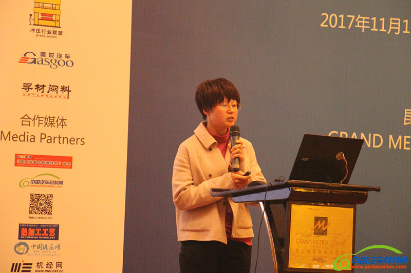 绿驰汽车高级经理张湛女士,向大家分享了铝合金车身应用的一些技术要点,主要针对铝合金材料以及钢铝混合车身仿真技术等进行了分享。