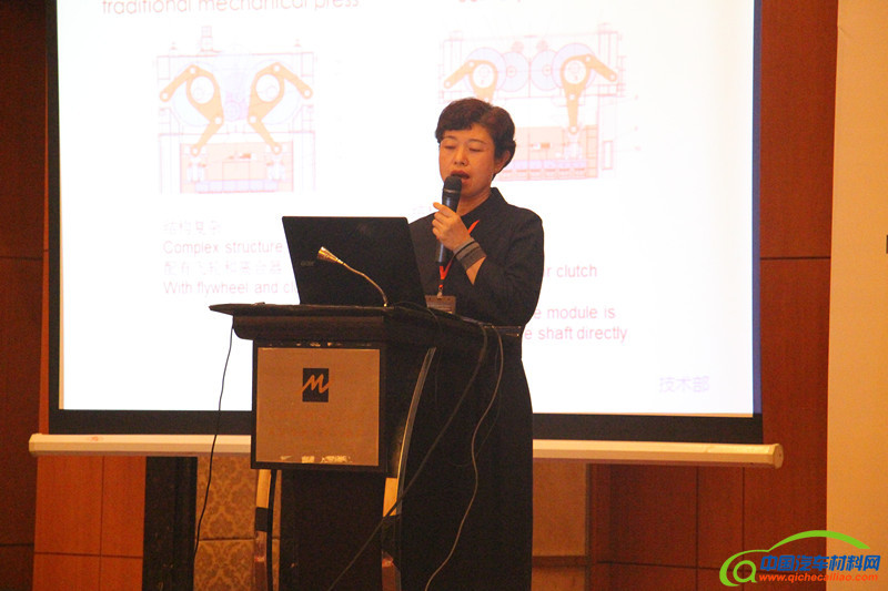 一汽解放汽车有限公司高级主任师李凤华女士发表了冲压伺服生产线的技术应用及展望的主题演讲,分享了一汽的伺服生产线的应用情况以及现在冲压行业的发展前景。