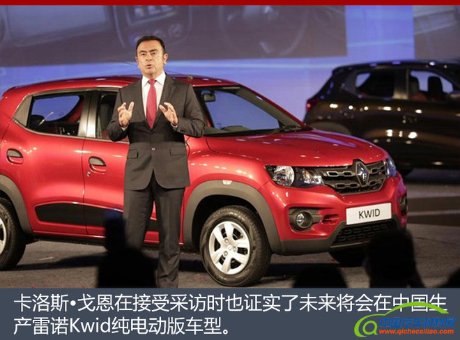 Kwid是雷诺旗下的一款全新小型SUV,曾在2015年正式发布。近日,网通社从海外媒体Automotive News了解到,卡洛斯·戈恩在接受采访时已确认雷诺将为旗下小型SUV Kwid推出纯电动版本,并将在中国进行生产。对此戈恩表示:“为了降低成本,新车将继续与雷诺-日产-三菱使用一个平台、一套电池组以及一套电动机。”此外,这款专门为中国市场研发的低成本车型很有可能将会在位于武汉的东风雷诺工厂进行生产。
