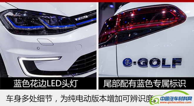 e-Golf延续了高尔夫家族的设计风格,并采用了大量的LED光源,车身等细节处蓝色元素的点缀和多处“e-Golf”标识使其具有更高的辨识度。内饰上,e-Golf同样保留了高尔夫的整体风格,升级版的车载信息娱乐系统也使得e-Golf在驾乘中更加智能化。相信首次入华的大众e-Golf将为逐渐升温的电动汽车市场注入更多新鲜与活力。