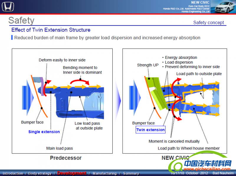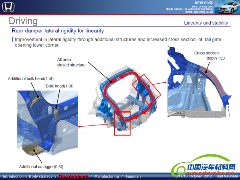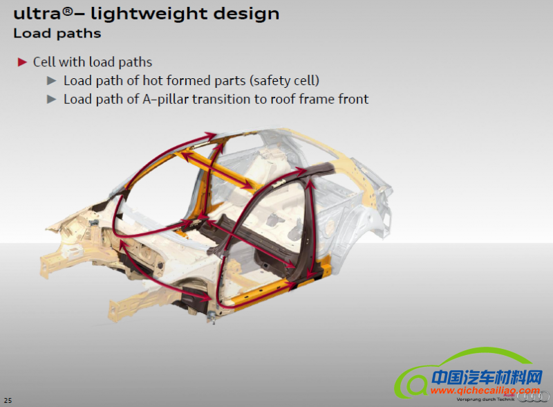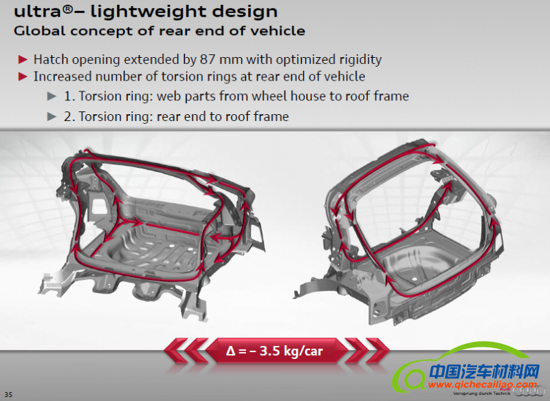 从今年ECB报告看,较系统运用环状结构设计思想阐述其车身结构设计的主机厂是Audi和Honda,也是沿用了其一以贯之的轻量化设计方法。