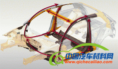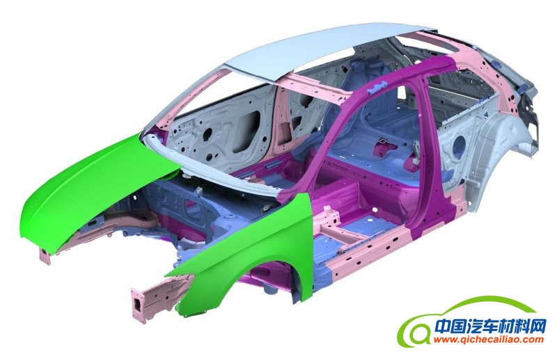 下图为白车身用材示意图(零件的用材的类型用RGB颜色代码加以区分):