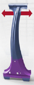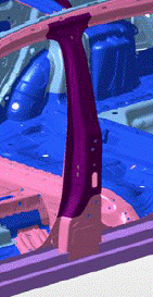 此车还采用了热成形钢新成型技术:热成形TRB板,以及热成形局部淬火技术。在前挡板加强横梁上应用热成形TRB板,实现了六个厚度的连续变换,实现最大限度的轻量化。B柱加强板采用热成形局部淬火技术,顶部热成形后强度达到1500MPa,而底部只有约600 MPa,实现B柱顶部与底部性能的差异化,这是为了满足侧碰对B柱性能的要求: B柱顶部在侧碰时,需要有较小的变形,实现对成员头部和身体的保护,而底部又需要有一定变形量来吸收侧碰的能量。对于采用热成形技术的B柱,若不采用热成形局部淬火,B柱下部可以缩短长度,弱化与门槛的刚性连接来实现B柱下端碰撞时吸能的目的。在ECB2011中奔驰New C-class就采用此解决方案,见下图。