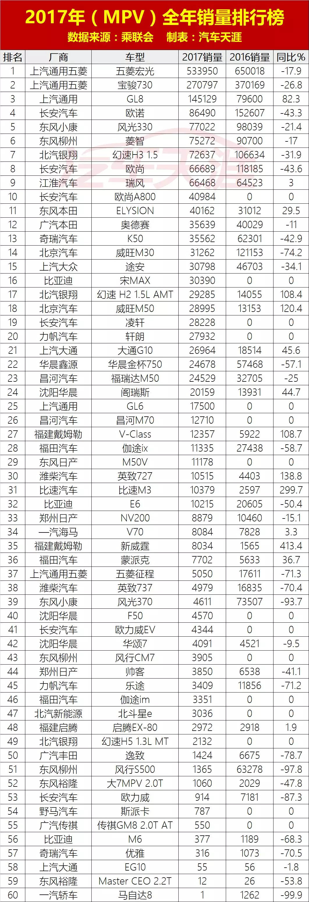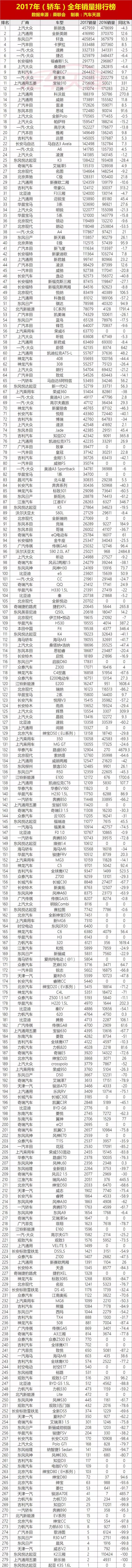 我们也从中汽协获取了轿车、SUV和MPV市场的车型全年销量数据,一起来看看2017年它们的表现如何。