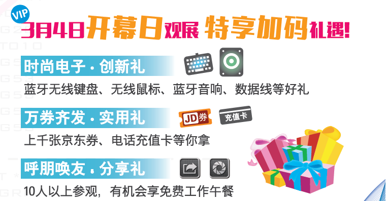 3.于3月4日开幕日当天前来参观,凭确认短信即可于当天现场兑奖.