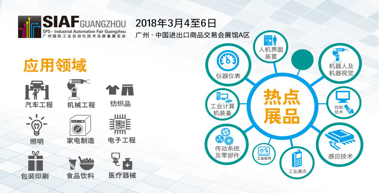 2018广州国际工业自动化展即将于2018年3月4-6日在广州·广交会展馆A区举行。SIAF展会是专业的工业自动化技术展览会,它涵盖了一系列从零部件到整套设备和集成自动化解决方案。设立以下特别专区: 机器人及机器人视觉专区 、接口技术、连接器专区 、传感器及测量专区 、电气专区 、工业通讯专区;详情资讯官网:www.gymf.com.cn/siaf/cn/
