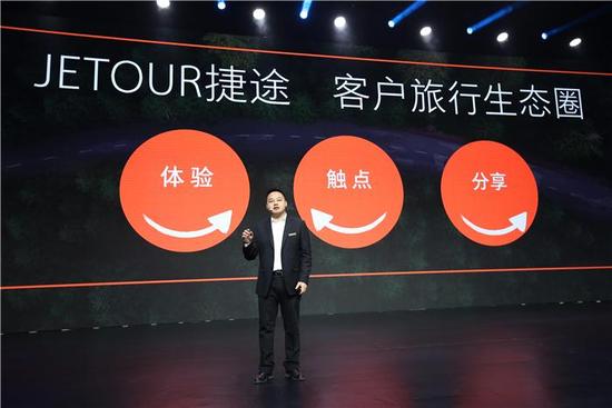 李总指出:触点即通过大数据平台充分了解用户,建立标签,线上通过智能交互与用户进行沟通,线下拓展和深化城镇购车圈,拉近与用户距离,通过百万创业计划等让更多人认知捷途;通过VR深度体验、透明工厂、直播销售、创新服务等方式体验捷途;以车友会、俱乐部、经纪人、积分制等方式分享捷途。同时,集团层面将打通旗下途居旅游版块、服务智联版块,以捷途产品序列为核心触点,给予客户订房、网约、共享、服务等体验,打造“出行旅游的生态圈”。