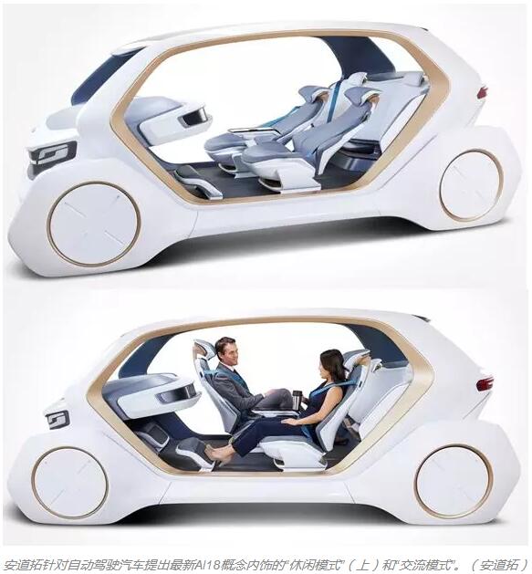 AI18的“家庭模式”最接近于传统汽车布局。其中,两个前排座椅面朝汽车行驶方向排布,后排为长条座椅。在“婴孩模式”下,旅行过程中,前排座椅可以向后旋转180度,以便父母和孩子进行互动。集成式儿童座椅安全固定装置(ISOFIX)的约束系统则能将儿童座椅牢牢固定在车内。在AI18的“载货模式”中,通过电动机构件,后排座垫可被收起,在前排座椅后方增加更多储物空间。在“交流模式”中,前排座椅可以旋转,面向对方。为此,安道拓工程师正在开发一个可升降座椅平台,令座椅在狭小空间中也能够灵活旋转。一旦驾乘人员就座,座椅平台即可上升。安道拓方面表示,将该技术运用至座椅中还属行业首创。“休闲模式”让乘客尊享舒适。前排座椅配备的“人体支点技术”可令座椅突破当下常规的倾斜角度,充分躺倒。座椅头枕、集成式扶手和专用脚托可随乘客身体实现同步移动。前排座椅安全带被搭载在座椅骨架内,而非像当今常见的汽车B柱上。