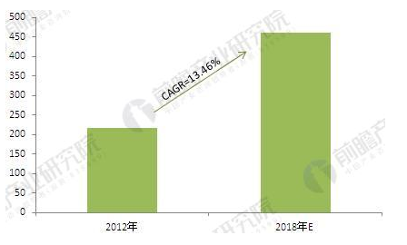 图表1:2012年-2018年全球车用改性塑料市场规模情况(单位:亿美元)