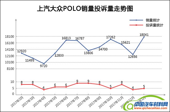记得上次在TOP榜单中提到POLO是在2017年5月,当时其销量刚刚走出低谷,保持着不错的上涨势头。这个让消费者颇为喜爱的“神奇小子”,依旧保持着一颗年轻上进的心,成为日渐萎靡的小型车市场中的一道靓丽风景。在经过几轮起伏后,POLO的月销量终于在2018年1月份迎来了近一年来的新高,迎来了开门红。从其近一年的销量投诉量走势图中不难看出,POLO的销量走势虽然起伏较大,但总体保持了上升的趋势。难能可贵的是,其一年来的月投诉量稳定保持在个位数,良好的质量口碑为销量的提升打下了坚实基础。2017年,第六代POLO已经在海外正式上市,预计国产版的POLO将在今年正式发布,虽然具体的时间尚未明确,但对于已经在国内服役7年之久的第五代POLO而言,无疑是一剂有力的强心剂。2018年对于POLO而言将是大放异彩的一年,“神奇小子”续写神奇的心愿也有望得以实现。