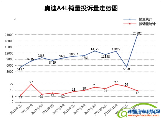 就在业界纷纷猜测A4L为何在2017年12月销量大跳水的原因时,转年来A4L就给了我们一个惊喜,不得不说,制造戏剧性是奥迪的拿手好戏。2018年1月,奥迪A4L单月销量突破2万辆,环比增长近3倍,这也让人不得不怀疑奥迪是为了制造这个2018年开门红,而刻意控制A4L在12月份的销量。不管怎样,这个开年头一炮打的够响,但能否保持这样的好状态还需要厂家认真对待产品的质量口碑以及消费者的抱怨。数据显示,A4L近一年来的月投诉量一直保持在2位数,且其2018年1月份的投诉回复率仅为5.9%。从2017年豪华品牌销量来看,奥迪虽然逆转夺冠,但其销量同比增幅仅为1.1%,相比宝马的15.1和奔驰的25.9%无疑落后了很多,要想保住豪华品牌销量王座,奥迪是应该好好反思下了。