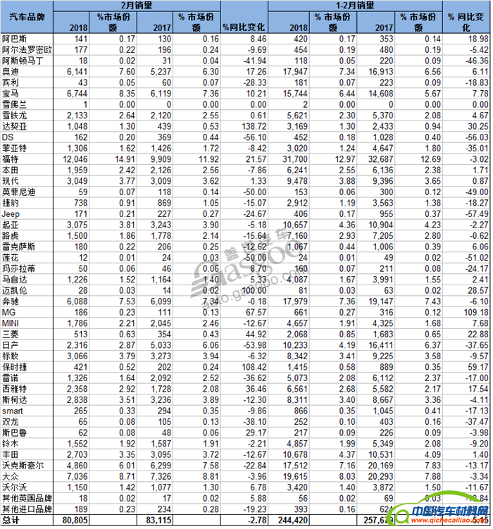 据英国汽车制造商协会(SMMT)发布的数据显示,英国2月份新车销量对比2017年同期下滑2.8%,注册量跌至80,805辆。2月也是3月份换牌之前时间最短的一个月份,仅有28天。