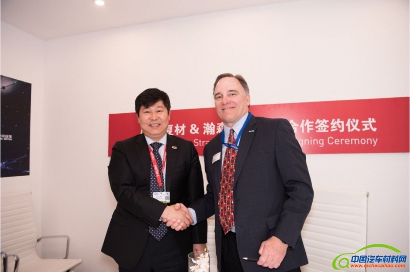 康得复材总裁谢富原先生(左)和瀚森化工COO Joseph Bevilagua先生(右)签订战略合作框架协议
