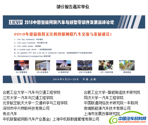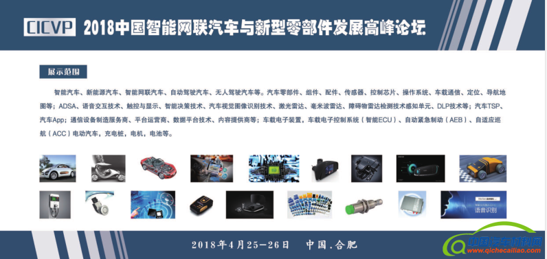 汽车产业是一个日新月异的产业,与时俱进,为顺应智能网联汽车行业的高速发展,由AG国际会展服务(安徽)有限公司,上海赫语商业媒体联合承办的2018中国智能网联汽车与新型零部件发展高峰论坛(www.cicvp.com)将于2018年4月25-26日在国家科技创新之城合肥隆重召开!