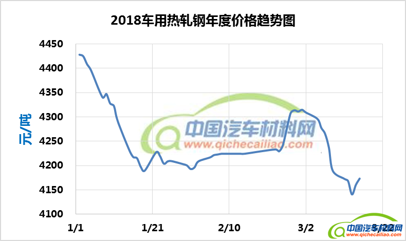车用热轧钢年度价格趋势:2018.01.02-2018.03.16