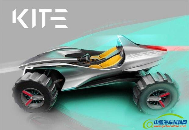 Kite是现代汽车在日内瓦车展上展示的概念车,很像一款沙滩摩托车。这款车采用了开放式的座舱设计。在车身尺寸方面,该车的长度为3745mm、宽度为2235mm、高度为1455mm、轴距为2580mm。该车没有车门,没有顶棚,也没有窗户,能够和你的智能手机互联互通。据介绍,在陆地上Kite由四轮、无刷的电动轮毂驱动,在水中驾驶时,Kite靠喷水驱动。